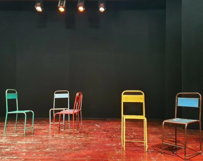 Sei sedie colorate di ferro, di quelle che non troppo tempo fa popolavano i refettori delle scuole. Sei attori di cui è doveroso citare i nomi già in principio di questa recensione, per l’estro e la maestria con cui hanno tenuto il palco a ritmo serrato e implacabile, impedendo di fatto anche il più minimo calo d’attenzione.