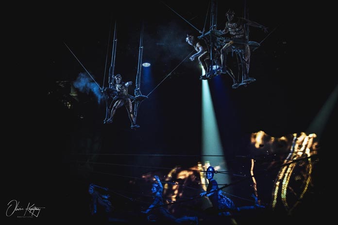 Non può mancare il sinuoso e ipnotico ragno bianco, la contorsionista Ariunsanaa Bataa, che appoggia il mento su un’asta rotante e inarca la schiena fino a far scendere le gambe oltre il viso, o ancora la cimice sinuosa e volteggiante di Danira Quintanar Valenzuela che si esibisce sospesa per i capelli. Numeri sorprendenti come la natura stessa, fino alla memorabile scena finale con saltimbanchi e trampolinisti vestiti da grilli che volano in aria rimbalzando su tappeti elastici prima di aderire a una parete da arrampicata alta circa 6 metri.