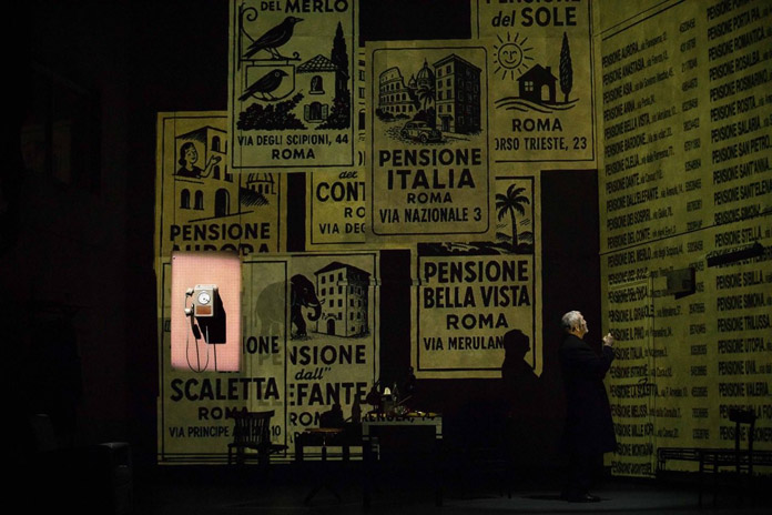 Popolizio orchestra tutto con una regia di rara finezza, che evita ogni deriva melò e lascia scorrere il racconto come una “coppa di champagne”: leggero, brillante, grazie anche alla presenza di Flavio Francucci e Diamara Ferrero, attraversato da alcune punte di leggera malinconia. La scenografia di Marco Rossi e Francesca Sgariboldi, attraversata da fenditure luminose e immagini, dialoga con le proiezioni di Lorenzo Letizia e il disegno sonoro di Alessandro Saviozzi, componendo un paesaggio mentale più che teatrale.