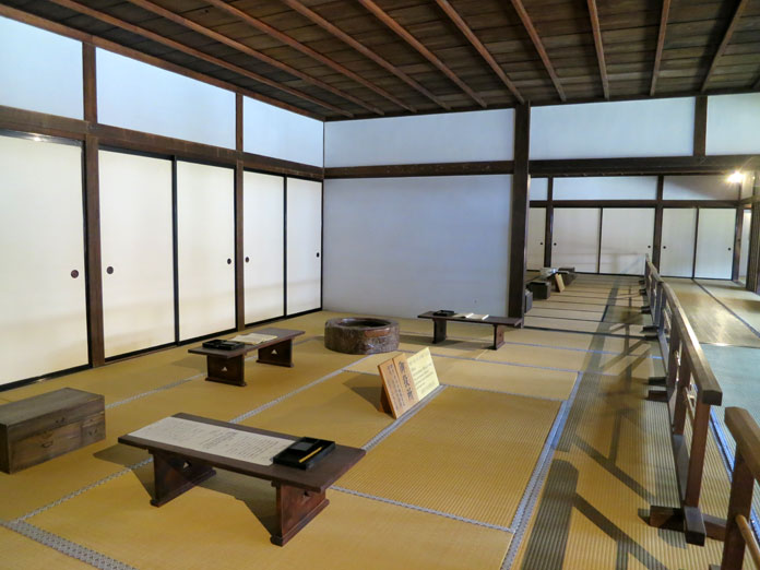 Con l’avvento dell’era Meiji (1868-1912) l’edificio venne utilizzato come ufficio locale per la prefettura, il distretto e la regione. Simile a un palazzo su piccola scala, questo tipo di edificio è sostenuto da muri spessi e presenta un imponente portone di ingresso.