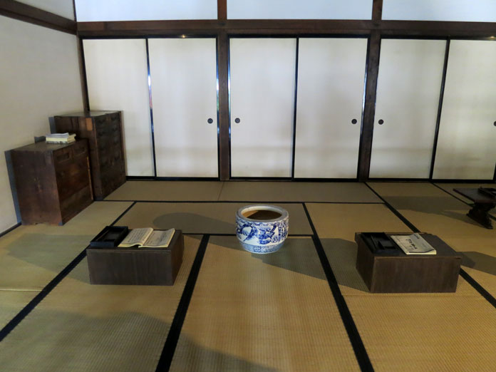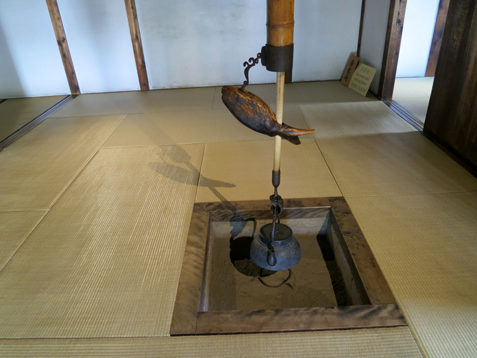 Divertitevi a cercare su finestre e porte il mamuki usagi, il coprichiodo di metallo a forma di lepre, simbolo dello shogunato, e nella sala principale, una prova di abilità sarà tentare di muovere il pesce in legno per alzare la pesante teiera posta sulle braci: il meccanismo, davvero ingegnoso, vi lascerà a bocca aperta.
