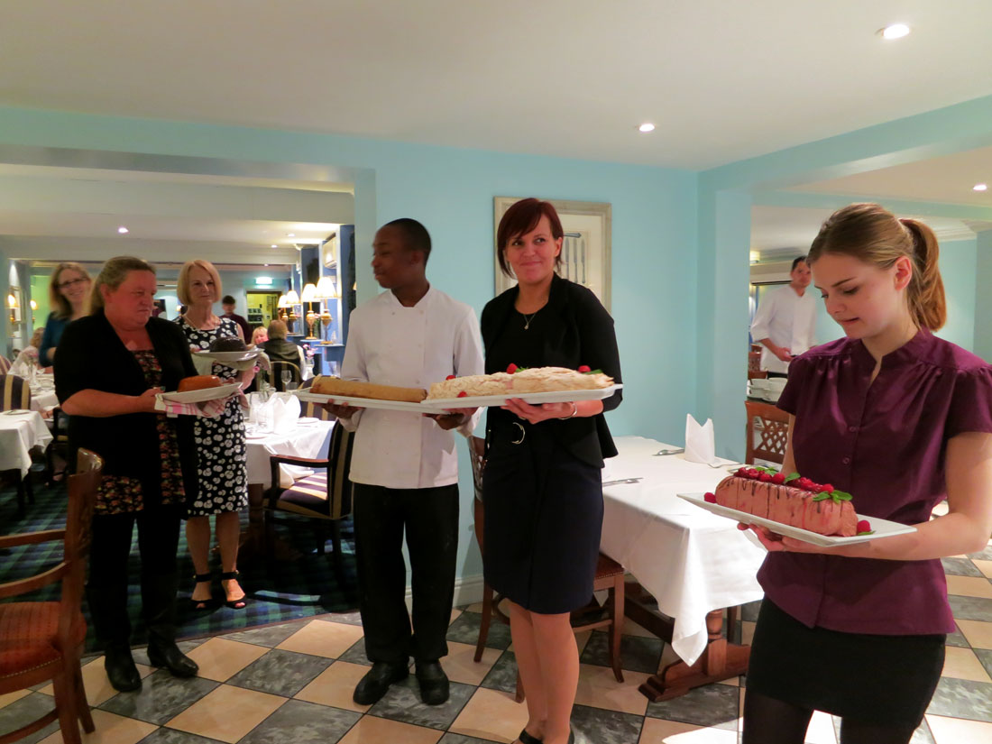 Christine racconta che dal 1985 il Three Ways House è sede del più famoso Pudding Club del Regno Unito, l’originale, un vero “must” e meta di appassionati del tradizionale dolce inglese da tutto il globo, che ogni venerdì sera da 30 anni, si ritrovano in una sala apposita dell’hotel per celebrare e degustare 7 fantastici pudding e infine decretarne il vincitore. Steve (con al collo una cravatta dedicata al dolce) è l’ideatore e il gran cerimoniere della serata del Pudding Club, che negli anni ha segnato anche la fortuna dell’hotel, tanto da dedicare al pudding l’arredamento di alcune delle 48 camere, tra le quali la più ambita: la Chocolate Suite.