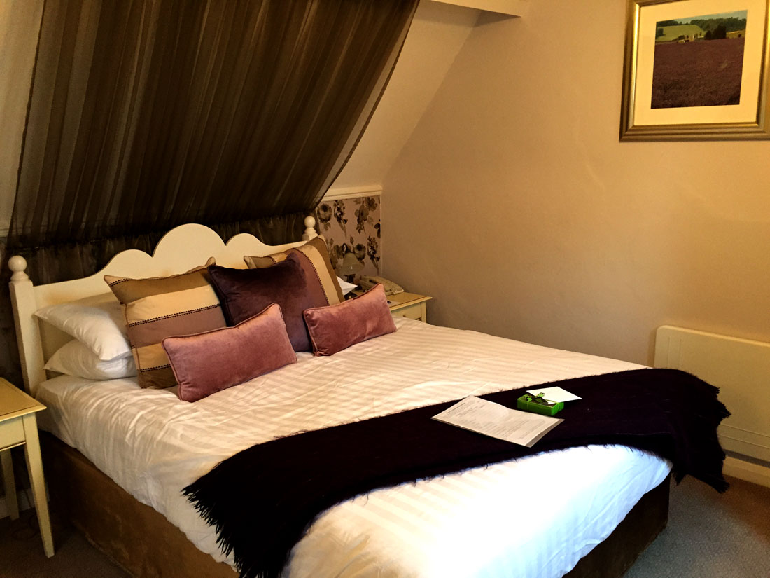 La spaziosa camera superior dove soggiorniamo gode di una splendida veduta sui giardini, arredata con stile e con gusto un po’ retrò, non manca di tutte le comodità a partire dall’ottimo letto king-size, 2 poltrone, TV, wi-fi gratuito, macchina Nespresso, e radio Bose. Nell’ampio bagno interno una vasca idromassaggio, accappatoi (mai scontati), e prodotti da bagno Molton Brown (molto apprezzati). I prezzi b&b oscillano da £155 per una semplice doppia, alle £230/260 per una Pudding Club Room.