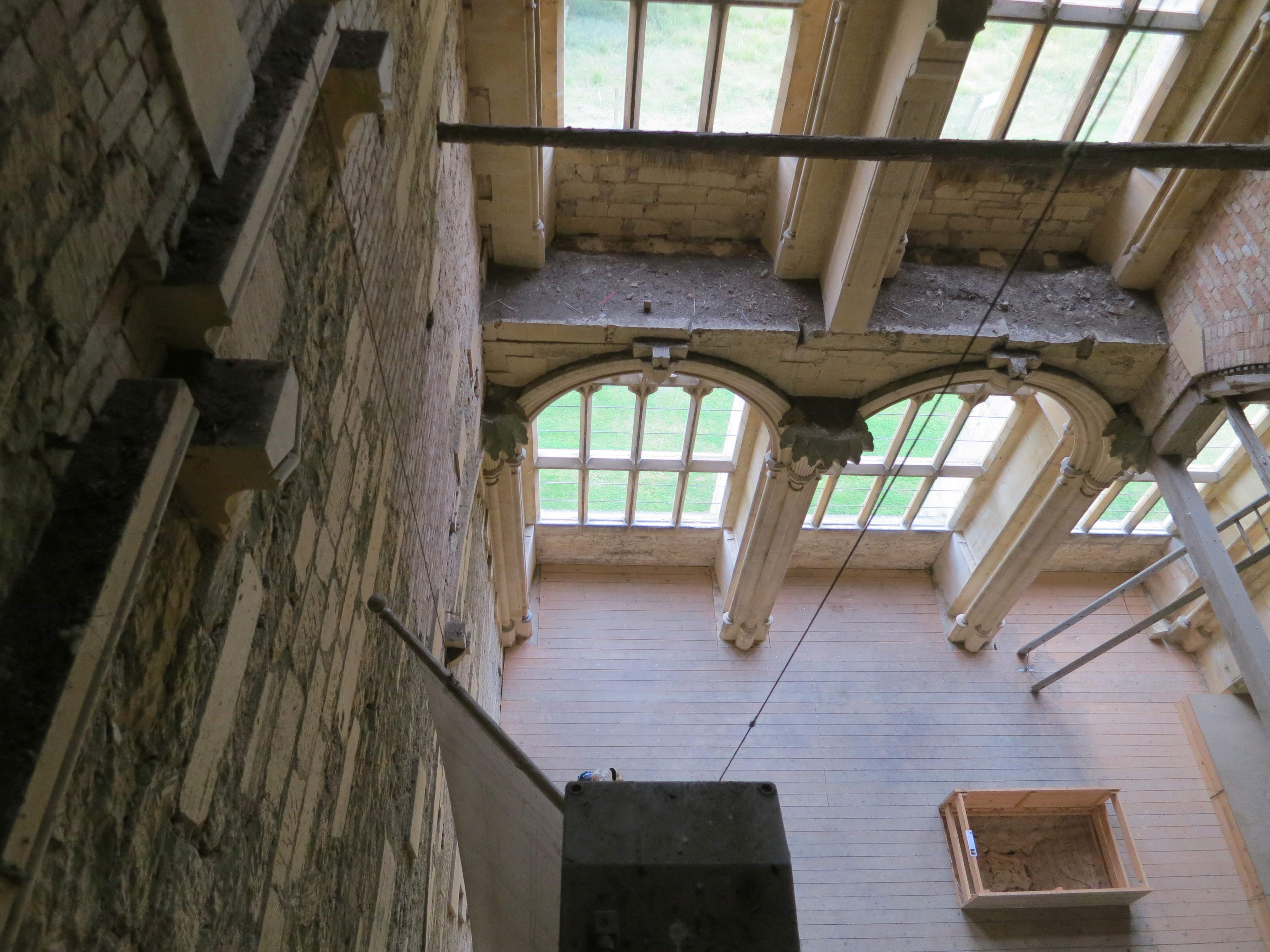 Di ben altri toni l’atmosfera che si respira alla Mansion. Nel 1845 il ricco armatore, convertito al cattolicesimo, William Leigh acquistò la tenuta, demolì la casa georgiana tirata su dalla famiglia Ducie, ed iniziò la costruzione di un nuovo palazzo in pietra calcarea tipica delle Cotswolds. Due architetti si avvicendarono nella lunga e travagliata costruzione in stile neogotico della grandiosa dimora: Charles Hansom e Benjamin Bucknall. Quest’ultimo ne fu particolarmente rapito, e le sue grandiose idee portarono avanti i lavori fino al 1868, quando, per motivi ignoti, gli operai abbandonarono letteralmente gli strumenti da lavoro, lasciando i camini fluttuanti in piani privi di pavimentazione e le finestre incompiute, aperte alle intemperie. Si racconta che dietro questa fuga si celi un omicidio.