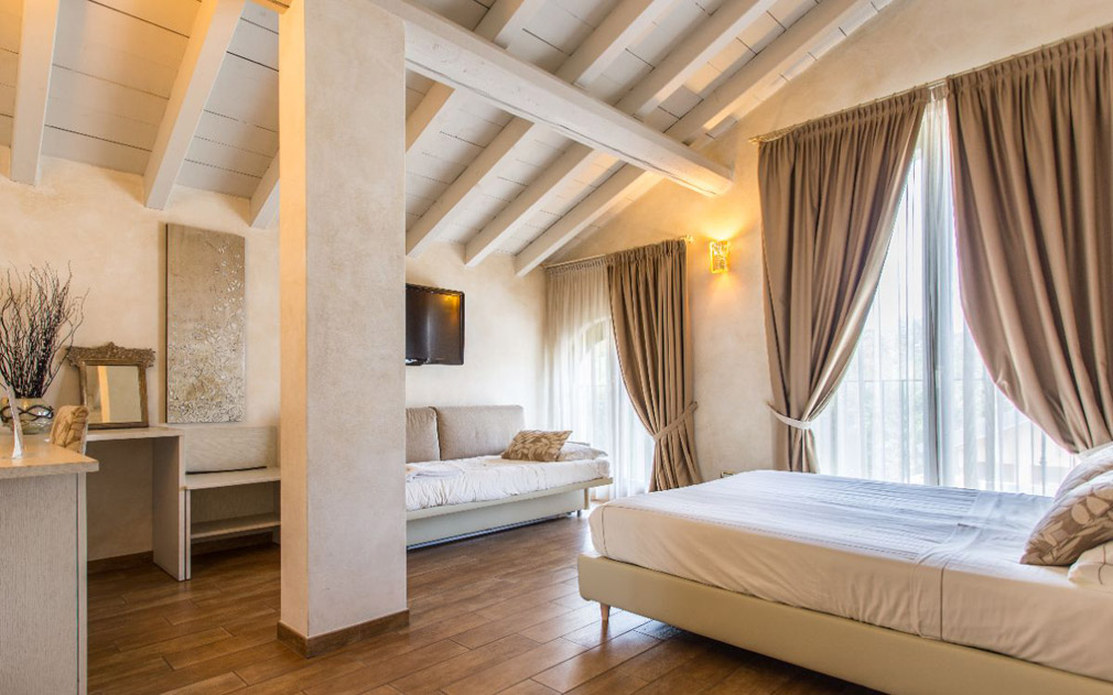 Le camere sono distribuite all’interno della proprietà, in edifici che si affacciano sui prati, sul maneggio o sul laghetto. L’arredo è semplice ed elegante, pensato per garantire comfort senza allontanarsi dall’identità rurale del luogo. Il silenzio notturno, interrotto solo dai suoni della campagna e dal canto del gallo, è uno degli elementi che caratterizzano il soggiorno.