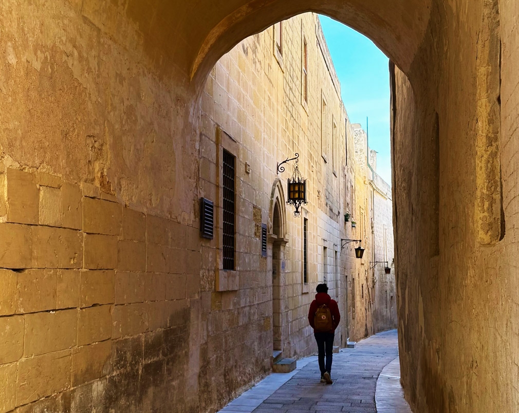 Mdina, l’antica capitale, è conosciuta come la “città silenziosa”. In inverno, con pochi visitatori, il suo carattere sospeso emerge pienamente.