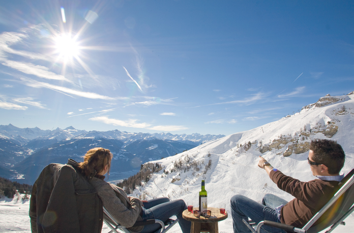Grazie alla sua eccezionale posizione (1.476 m d’altezza) nel Canton Vallese Svizzero che si estende dalla valle del Rodano (500 m d’altezza) fino al ghiacciaio della Plaine Morte (3.000 m d’altezza), da Crans-Montana si gode di un panorama mozzafiato a 180 gradi sul diadema di vette che si estendono dalla Punta Dufour al Monte Bianco, passando per il Weisshorn e il Cervino: puro spettacolo per occhi e anima.