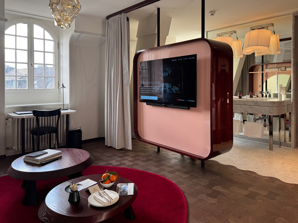Al Grand Hotel Les Trois Rois le camere sono capitoli di un racconto che si apre ogni sera e si chiude al mattino, con il Reno come colonna sonora. Noi abbiamo soggiornato nella suite della zona rinnovata Blumenrain 2, la parte dell’hotel recentemente ripensata dallo studio Herzog & de Meuron. È qui che Les Trois Rois mostra il suo volto più audace.